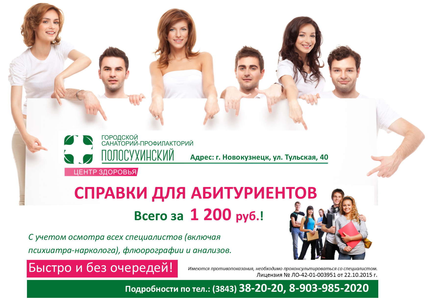С 11 апреля по 30 июня 2016 г. прохождение медосмотра для оформления справки для абитуриентов всего за 1200 руб.
