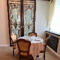 Элегантно оформленный номер, площадью 30 кв м, расположен на 3-ем этаже здания. Номер разделен на спальную зону с одной большой кроватью (отдельная комната), столовую зону и зону отдыха (гостинная).